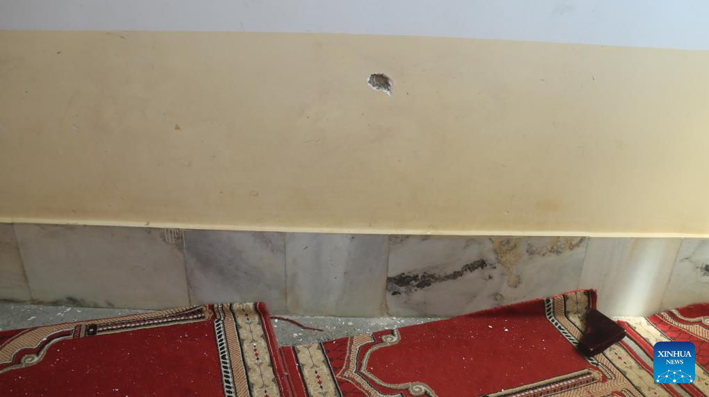 This photo taken on April 30, 2024 shows the bullet hole left by a shooting at a mosque in the Gozara district, west Afghanistan's Herat Province. Six people were shot dead and another was injured following an attack at a mosque by gunmen in west Afghanistan's Herat province on Monday evening, spokesman for the Ministry of Interior Mufti Abdul Mateen Qani said Tuesday. (Photo by Mashal/Xinhua)