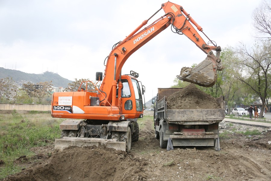 Photo taken on April 29, 2024 shows the construction site of a major road in Kabul, capital of Afghanistan. (Photo by Saifurahman Safi/Xinhua)