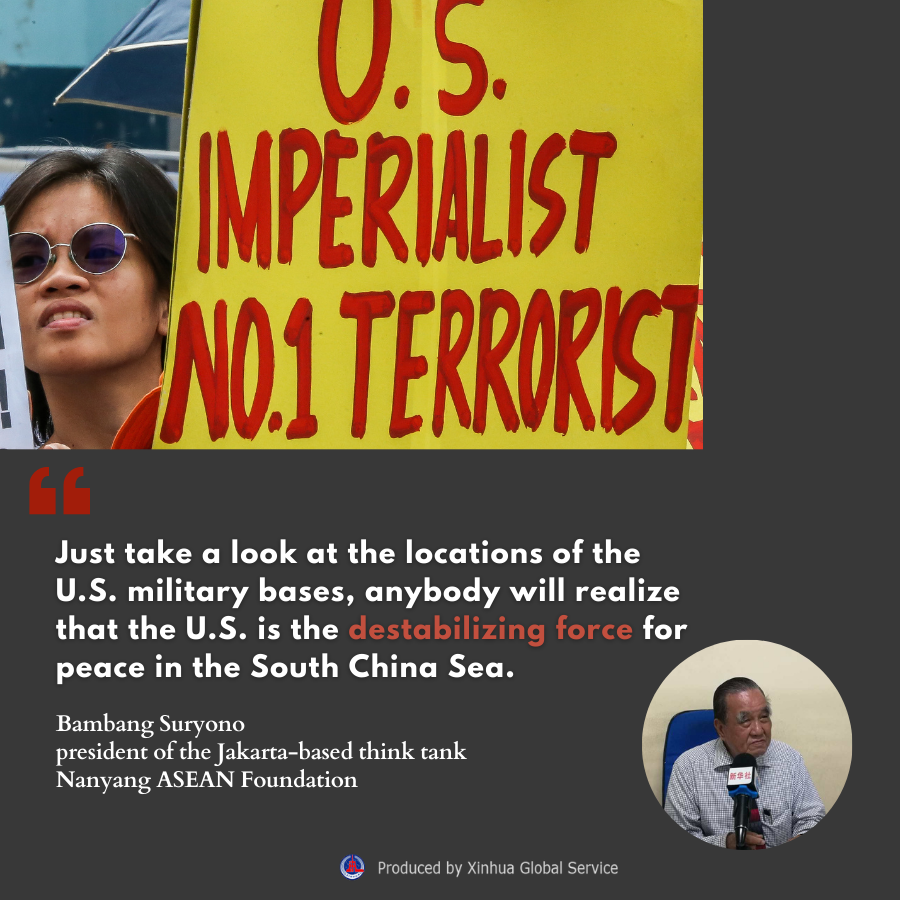 By actively trying to get involved in the South China Sea affairs, Washington aims to hinder China's development and strength, said Bambang Suryono, president of the Jakarta-based think tank Nanyang ASEAN Foundation.