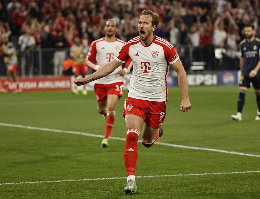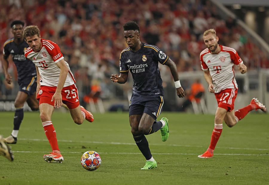 BERLIN, April 30 (Xinhua) -- Vinicius Junior's brace and late equalizer helped Real Madrid secure a 2-2 draw with Bayern Munich in the first leg of the UEFA Champions League semifinals on Tuesday.