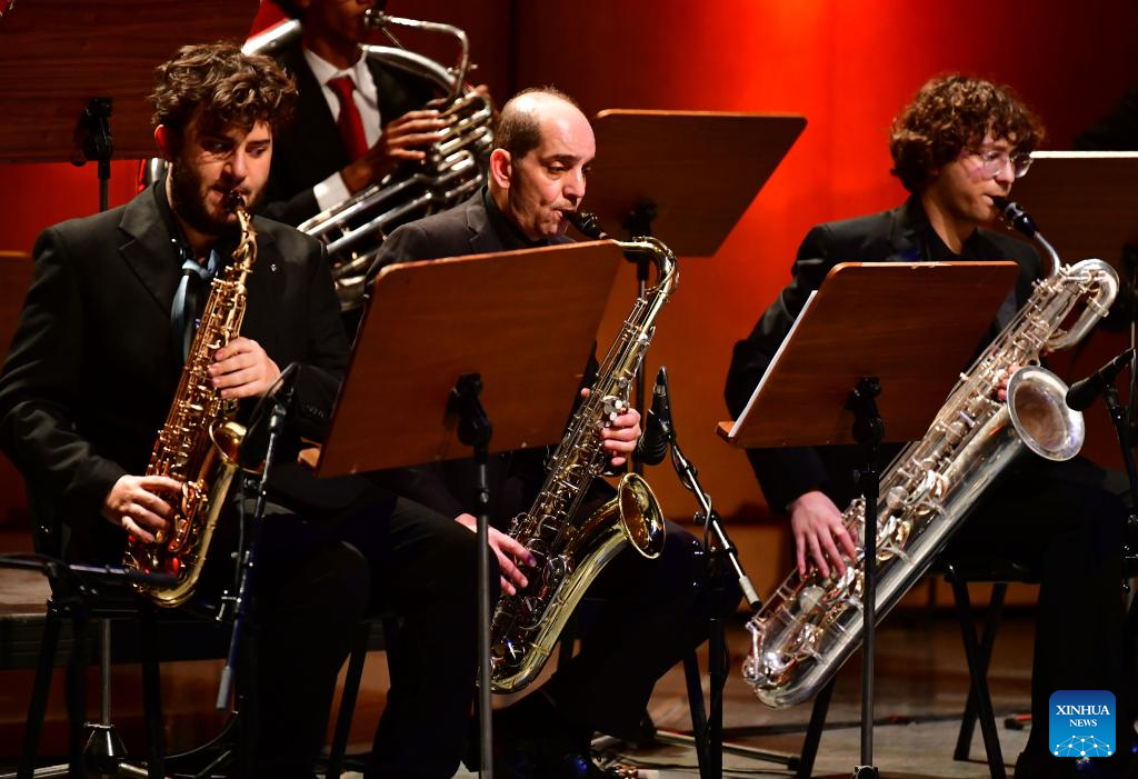 Musicians perform during a celebration of International Jazz Day in Damascus, Syria, on April 30, 2024. (Photo by Ammar Safarjalani/Xinhua)