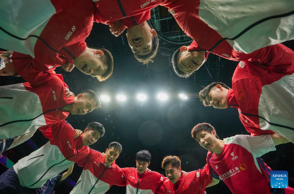 Team China cheer before the quarterfinal between China and India at BWF Thomas Cup Finals in Chengdu, southwest China's Sichuan Province, May 2, 2024. (Xinhua/Jiang Hongjing)