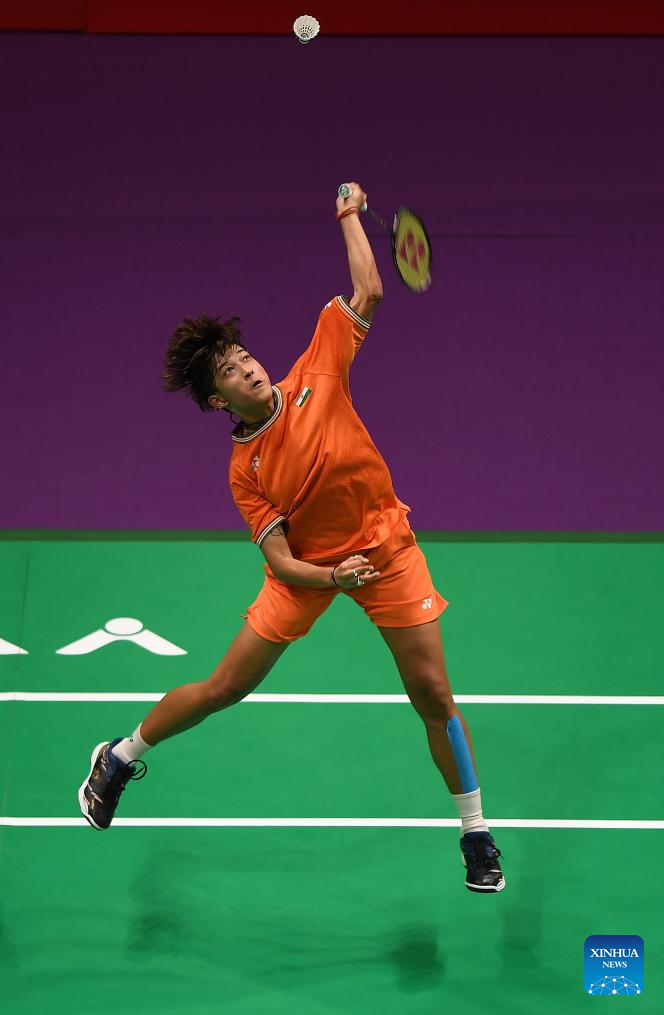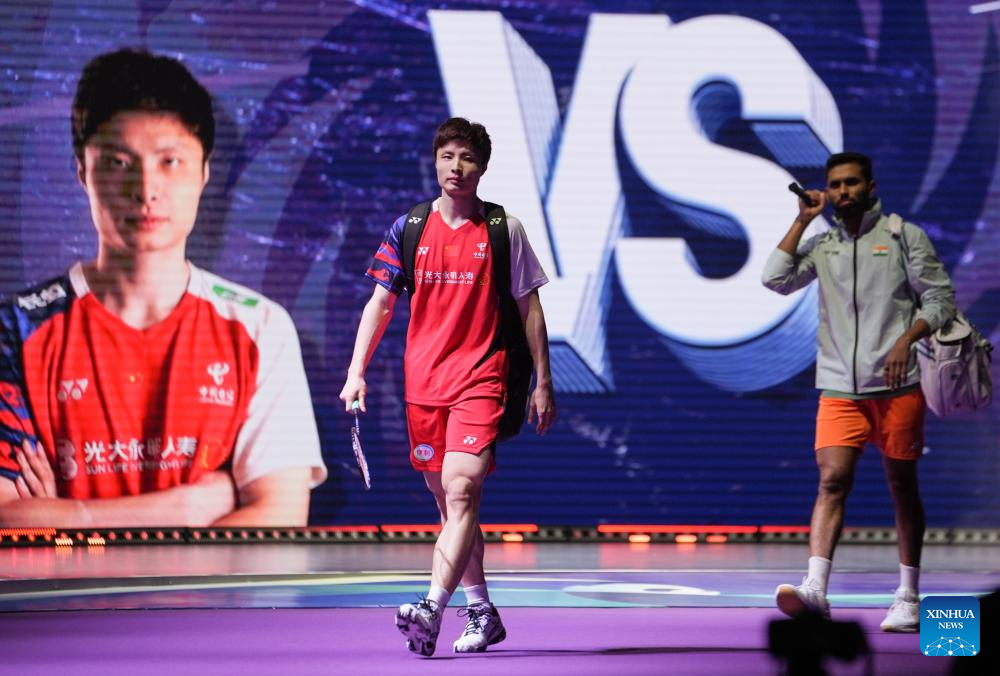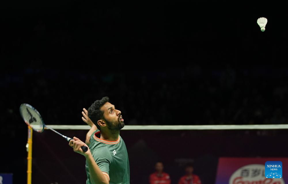 Prannoy H.S. of India competes in the singles match against Shi Yuqi of China during the quarterfinal between China and India at BWF Thomas Cup Finals in Chengdu, southwest China's Sichuan Province, May 2, 2024. (Xinhua/Jiang Hongjing)