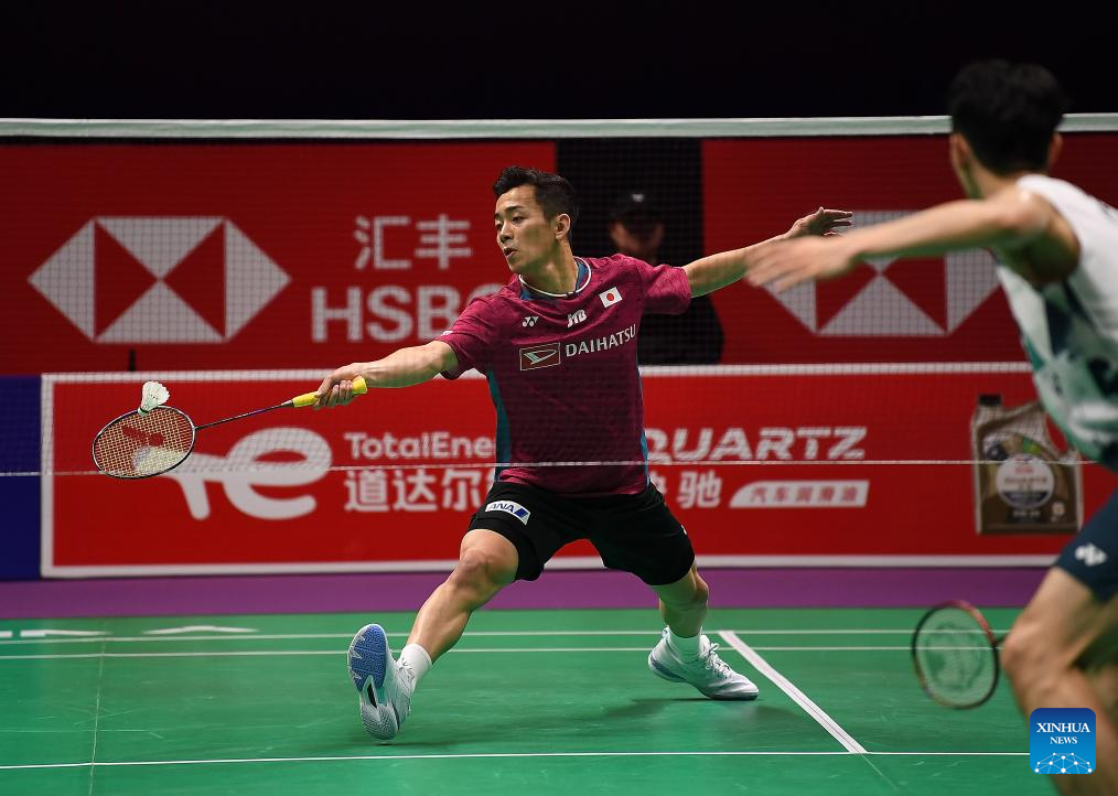 Nishimoto Kenta of Japan competes against Lee Zii Jia of Malaysia in the singles match of the quarterfinal between Japan and Malaysia at BWF Thomas Cup Finals in Chengdu, southwest China's Sichuan Province, May 2, 2024. (Xinhua/Hou Zhaokang)