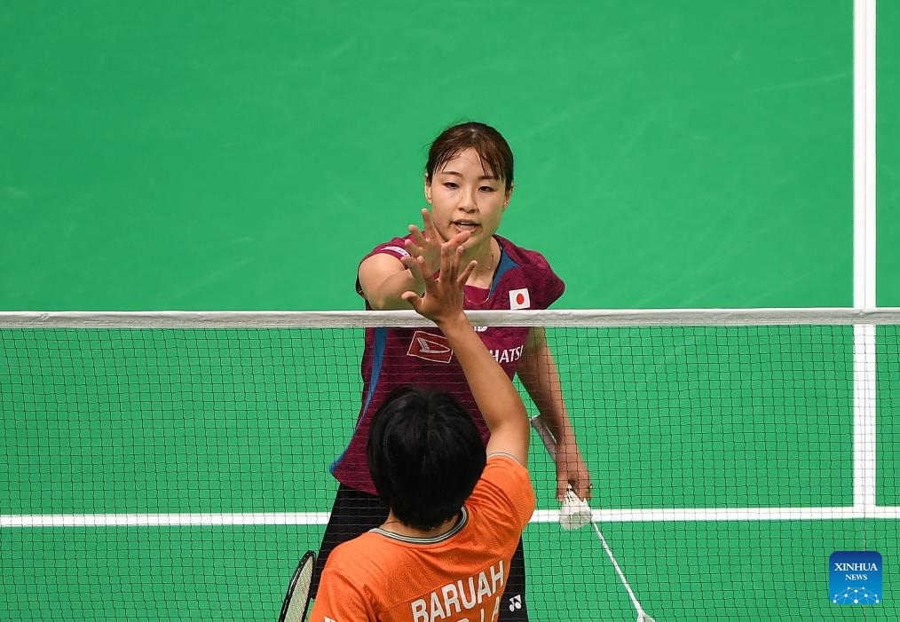 Ohori Aya of Japan competes with Ashmita Chaliha of India in the singles match of the quarterfinal between Japan and India at BWF Uber Cup Finals in Chengdu, southwest China's Sichuan Province, May 2, 2024. (Xinhua/Hou Zhaokang)