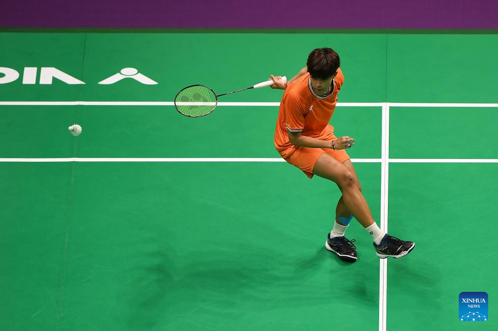 Ashmita Chaliha of India competes with Ohori Aya of Japan in the singles match of the quarterfinal between Japan and India at BWF Uber Cup Finals in Chengdu, southwest China's Sichuan Province, May 2, 2024. (Xinhua/Hou Zhaokang)