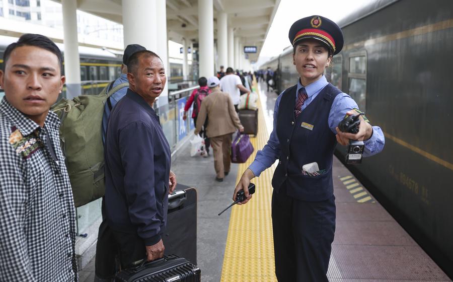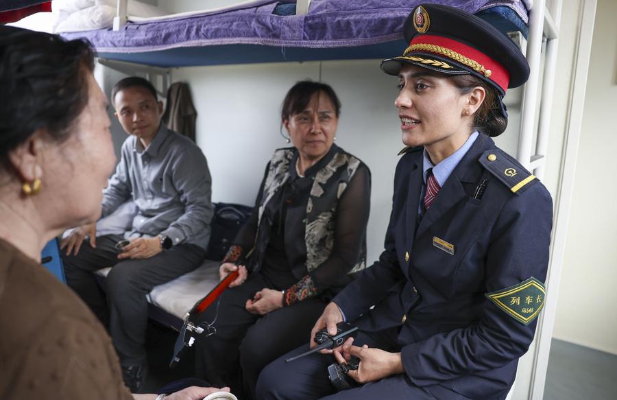 URUMQI, May 2 (Xinhua) -- Airkir Duliki, the 27-year-old ethnic Tajik train conductor, was born and raised amidst the snow-capped mountains and grasslands in a village of Taxkorgan Tajik Autonomous County on the Pamir Plateau, where railways were not common for residents in the past.