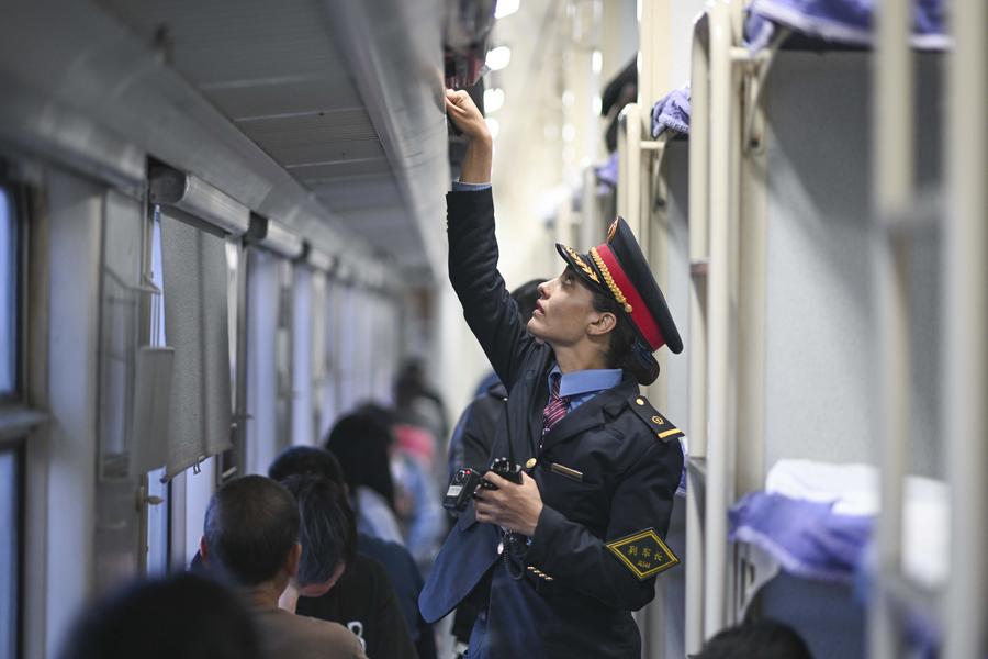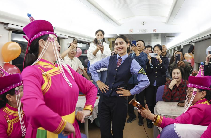 Airkir Duliki (1st R) talks with passengers on a train from Kashgar to Chengdu in China, April 19, 2024. (Xinhua/Hu Huhu)Airkir Duliki works on a train from Kashgar to Chengdu in China, April 18, 2024. (Xinhua/Hu Huhu)Airkir Duliki works at a railway station in Korla, northwest China's Xinjiang Uygur Autonomous Region, April 18, 2024. (Xinhua/Hu Huhu)Airkir Duliki (R) helps passengers board a train from Chengdu to Kashgar at a railway station in Chengdu, southwest China's Sichuan Province, April 20, 2024. (Xinhua/Hu Huhu)Airkir Duliki works on a train at a railway station in Chengdu, southwest China's Sichuan Province, April 20, 2024. (Xinhua/Hu Huhu)Airkir Duliki and folk artists perform dance for passengers on a train from Kashgar to Chengdu in China, April 19, 2024. (Xinhua/Hu Huhu)Airkir Duliki (C) and her parents pose for a photo at home at Taxkorgan Tajik Autonomous County in northwest China's Xinjiang Uygur Autonomous Region, March 23, 2024. (Xinhua/Hu Huhu)Airkir Duliki (1st L, back) and her family members sing at home at Taxkorgan Tajik Autonomous County in northwest China's Xinjiang Uygur Autonomous Region, March 23, 2024. (Xinhua/Hu Huhu)Airkir Duliki helps herd sheep at Taxkorgan Tajik Autonomous County, northwest China's Xinjiang Uygur Autonomous Region, March 22, 2024. (Xinhua/Hu Huhu)