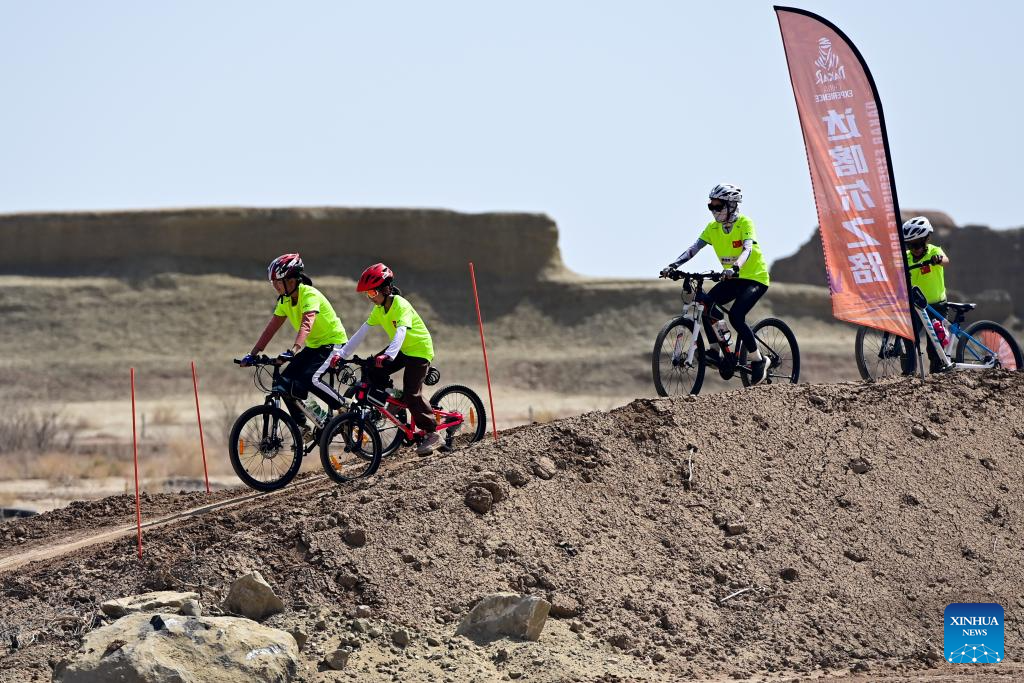 Children ride off-road bikes on a road trip route at a scenic area in Urho District of Karamay, northwest China's Xinjiang Uygur Autonomous Region, May 1, 2024. During the May Day holiday, Urho District of Karamay City has become a popular travel destination for tourists from all over the country. Various activities such as low-altitude flight, no-man's land crossing, RV camping, and off-road motorcycling have been carried out here to meet the diverse and personalized needs of tourists.