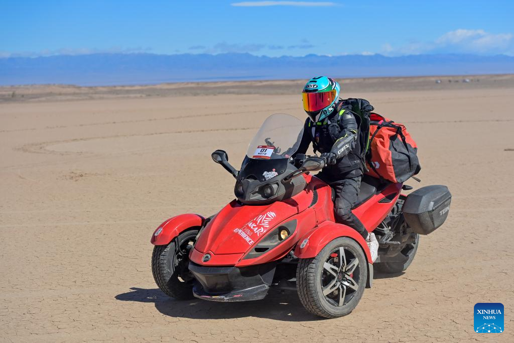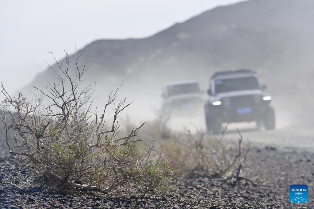 A tourist drives an off-road vehicle in Urho District of Karamay, northwest China's Xinjiang Uygur Autonomous Region, May 2, 2024. During the May Day holiday, Urho District of Karamay City has become a popular travel destination for tourists from all over the country. Various activities such as low-altitude flight, no-man's land crossing, RV camping, and off-road motorcycling have been carried out here to meet the diverse and personalized needs of tourists.