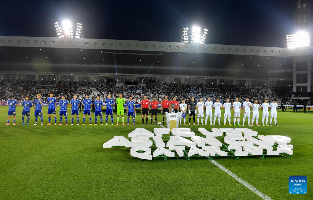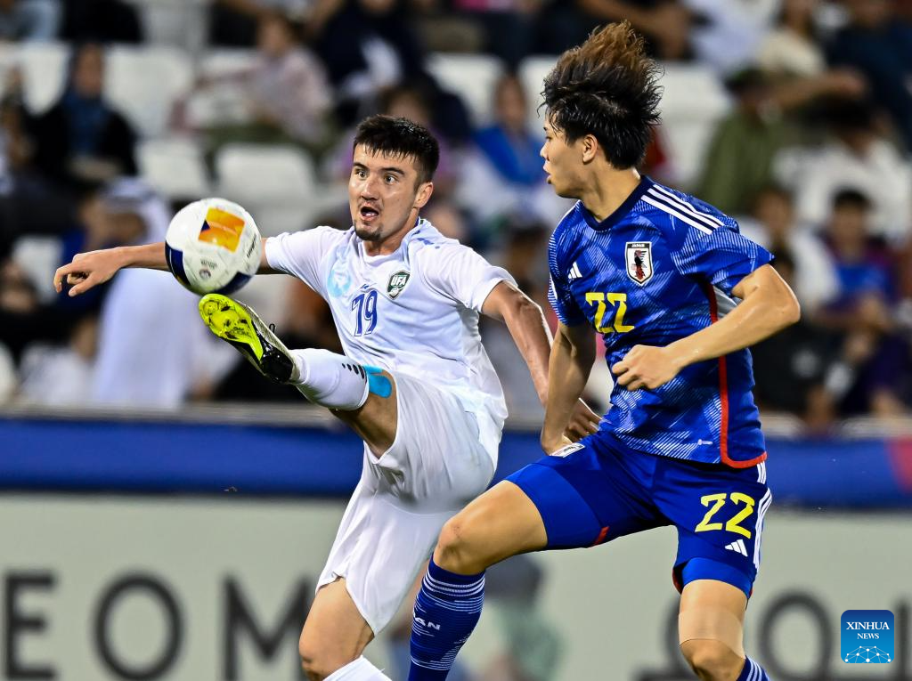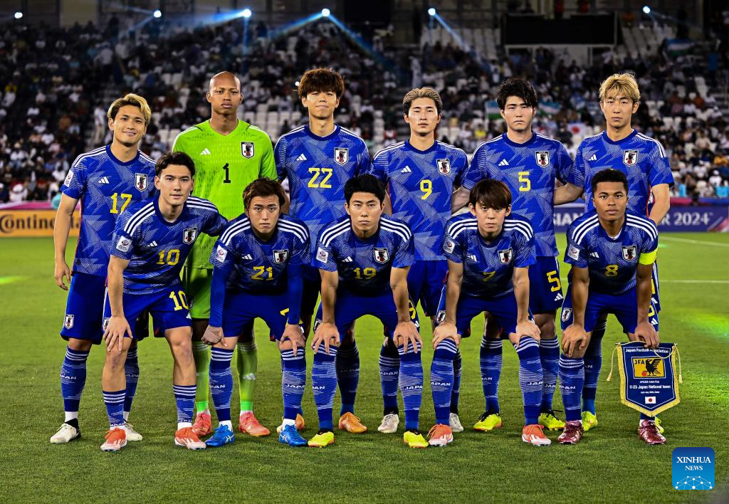 Starting players of Japan line up prior to the final match between Japan and Uzbekistan at AFC U23 Asian Cup Qatar 2024 football tournament in Doha, Qatar, on May 3, 2024. (Photo by Nikku/Xinhua)