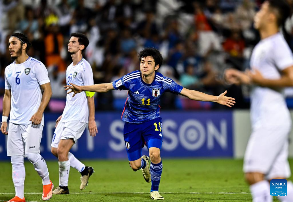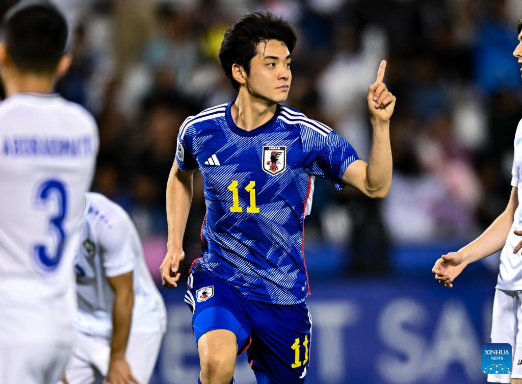 Yamada Fuki of Japan celebrates after scoring during the final match between Japan and Uzbekistan at AFC U23 Asian Cup Qatar 2024 football tournament in Doha, Qatar, on May 3, 2024. (Photo by Nikku/Xinhua)