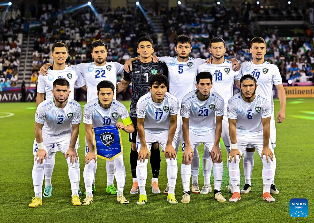 Starting players of Uzbekistan line up prior to the final match between Japan and Uzbekistan at AFC U23 Asian Cup Qatar 2024 football tournament in Doha, Qatar, on May 3, 2024. (Photo by Nikku/Xinhua)