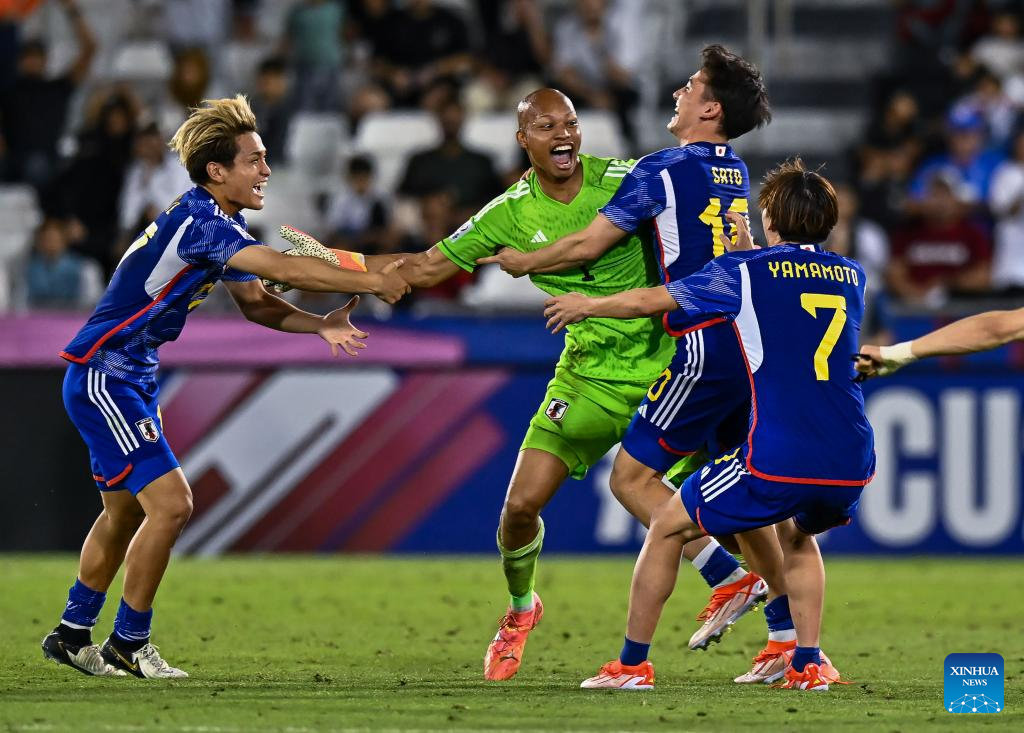 Yamada Fuki (C) of Japan celebrates after scoring during the final match between Japan and Uzbekistan at AFC U23 Asian Cup Qatar 2024 football tournament in Doha, Qatar, on May 3, 2024. (Photo by Nikku/Xinhua)