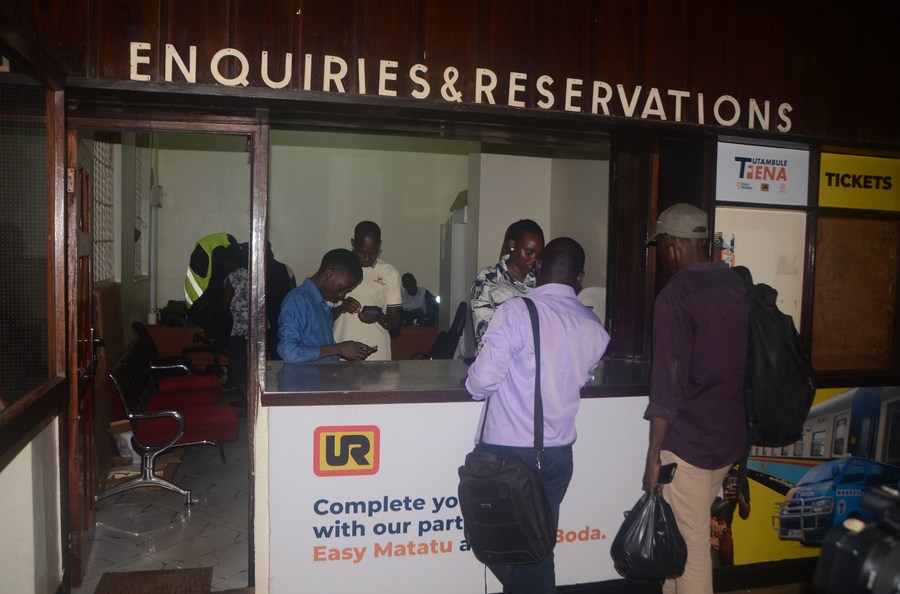Passengers buy tickets at a train station in Kampala, Uganda, May 2, 2024. (Photo by Nicholas Kajoba/Xinhua)