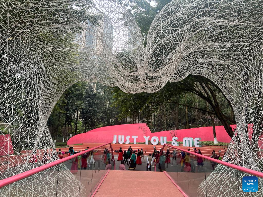 This photo taken with a mobile phone shows a view of Love Park in Dadukou District, southwest China's Chongqing, on March 5, 2024. (Xinhua/Yang Shiyan)