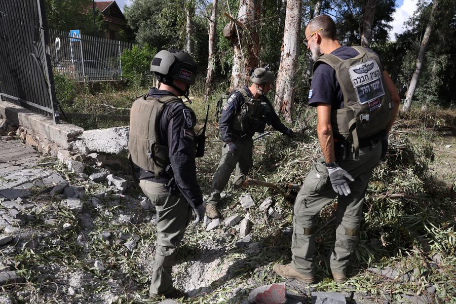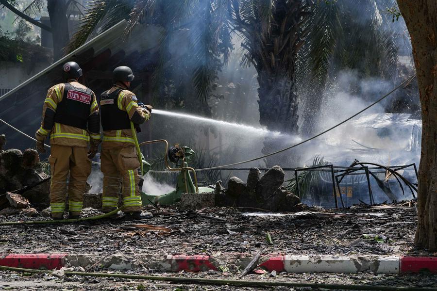 JERUSALEM, May 5 (Xinhua) -- About 20 rockets were launched from Lebanon at northern Israel on Sunday, damaging facilities and causing power outages in the city of Kiryat Shmona, Israeli sources said.