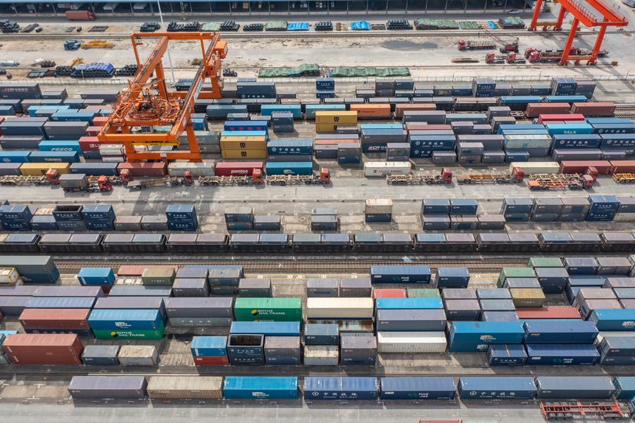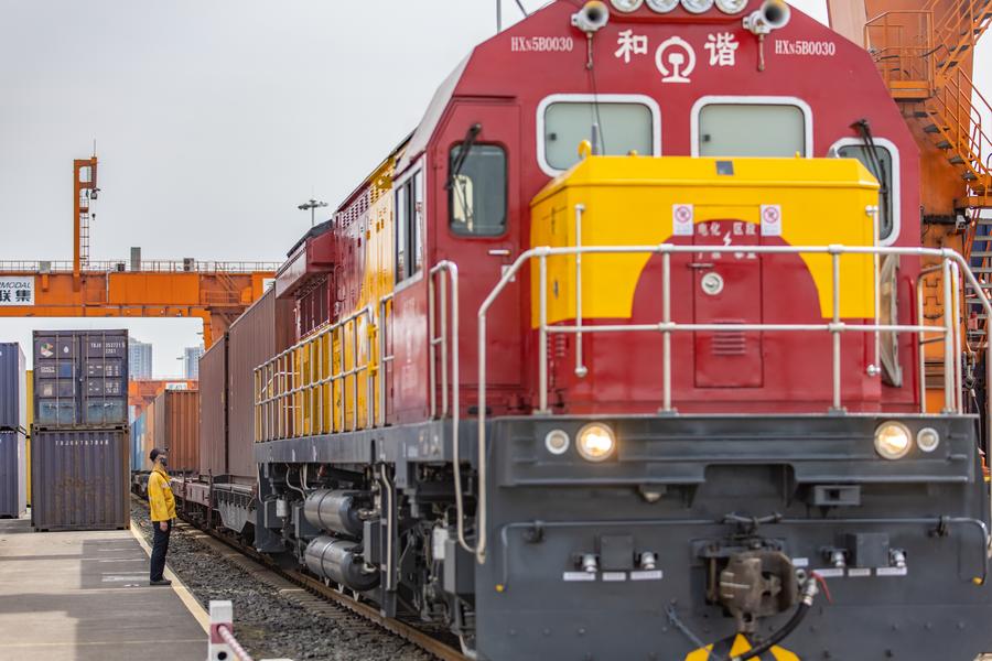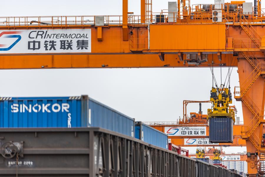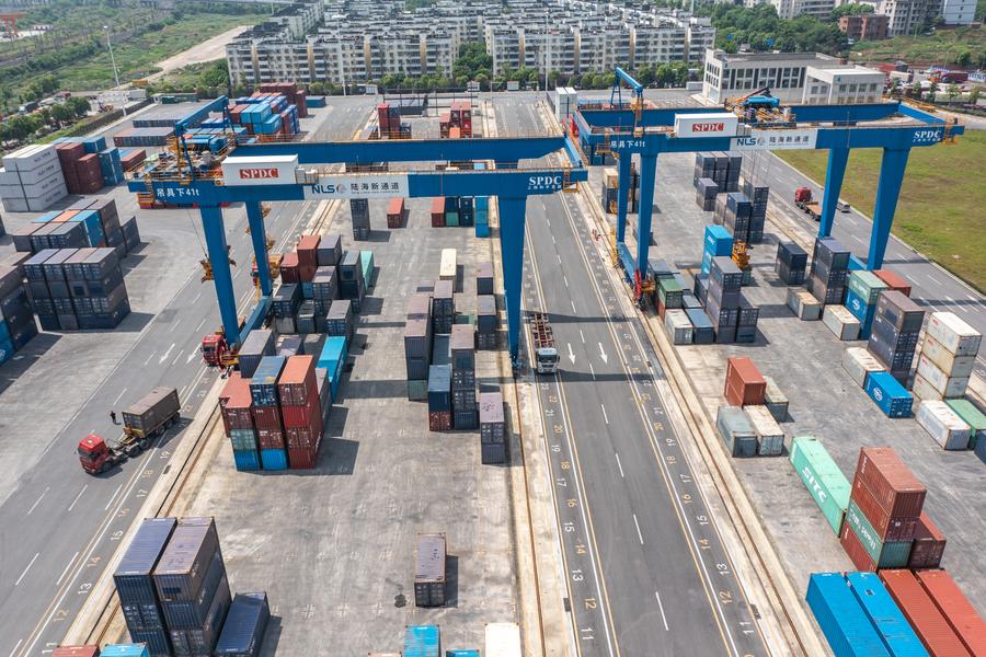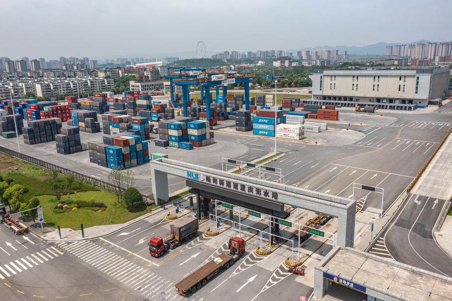 An aerial drone photo taken on May 5, 2024 shows trucks running at the Tuanjiecun Station in the Chongqing International Logistics Hub Park in southwest China's Chongqing Municipality. (Xinhua/Huang Wei)An aerial drone photo taken on May 5, 2024 shows trucks running at the dry port of the New International Land-Sea Trade Corridor in southwest China's Chongqing Municipality. (Xinhua/Huang Wei)A drone photo taken on May 5, 2024 shows trucks running at the dry port of the New International Land-Sea Trade Corridor in southwest China's Chongqing Municipality. (Xinhua/Huang Wei)An aerial drone photo taken on May 5, 2024 shows trucks running at the dry port of the New International Land-Sea Trade Corridor in southwest China's Chongqing Municipality. (Xinhua/Huang Wei)A drone photo taken on May 5, 2024 shows a truck transferring containers at the dry port of the New International Land-Sea Trade Corridor in southwest China's Chongqing Municipality. (Xinhua/Huang Wei)Customs officers check goods waiting to be exported via China-Europe freight trains at the Tuanjiecun Station in the Chongqing International Logistics Hub Park in southwest China's Chongqing Municipality, May 3, 2024. (Xinhua/Huang Wei)A China-Europe freight train waits to depart from the Tuanjiecun Station in the Chongqing International Logistics Hub Park in southwest China's Chongqing Municipality, May 5, 2024. (Xinhua/Huang Wei)A China-Europe freight train is loaded at the Tuanjiecun Station in the Chongqing International Logistics Hub Park in southwest China's Chongqing Municipality, May 5, 2024. (Xinhua/Huang Wei)An aerial drone photo taken on May 5, 2024 shows cars waiting to be loaded at the Tuanjiecun Station in the Chongqing International Logistics Hub Park in southwest China's Chongqing Municipality. (Xinhua/Huang Wei)A drone photo taken on May 5, 2024 shows a China-Europe freight train waiting to depart from the Tuanjiecun Station in the Chongqing International Logistics Hub Park in southwest China's Chongqing Municipality. (Xinhua/Huang Wei)An aerial drone photo taken on May 5, 2024 shows a China-Europe freight train pulling out of the Tuanjiecun Station in the Chongqing International Logistics Hub Park in southwest China's Chongqing Municipality. (Xinhua/Huang Wei)■