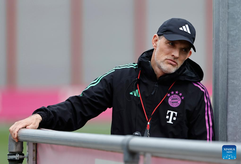 Thomas Tuchel, head coach of Bayern Munich, reacts during a training session in Munich, Germany, May 7, 2024. Bayern Munich of Germany will play against Real Madrid in the UEFA Champions League semifinal second leg match in Madrid, Spain, on May 8, 2024. (Photo by Philippe Ruiz/Xinhua)