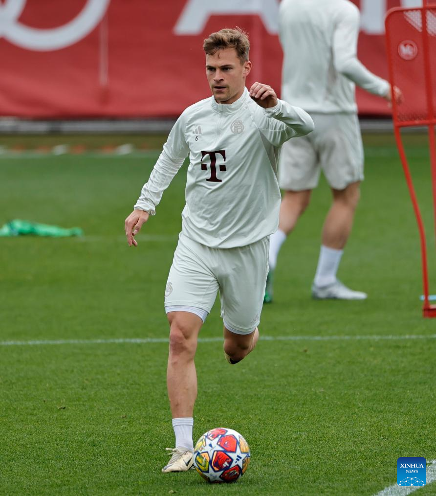 Joshua Kimmich of Bayern Munich attends a training session in Munich, Germany, May 7, 2024. Bayern Munich of Germany will play against Real Madrid in the UEFA Champions League semifinal second leg match in Madrid, Spain, on May 8, 2024. (Photo by Philippe Ruiz/Xinhua)