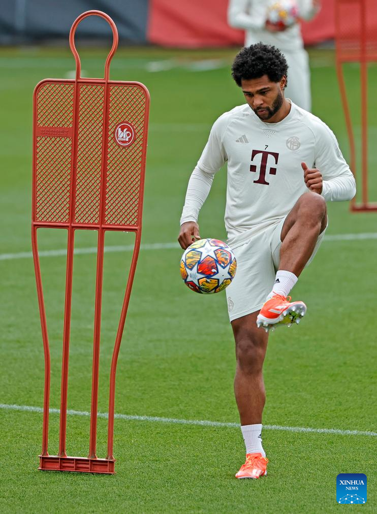 Serge Gnabry of Bayern Munich attends a training session in Munich, Germany, May 7, 2024. Bayern Munich of Germany will play against Real Madrid in the UEFA Champions League semifinal second leg match in Madrid, Spain, on May 8, 2024. (Photo by Philippe Ruiz/Xinhua)