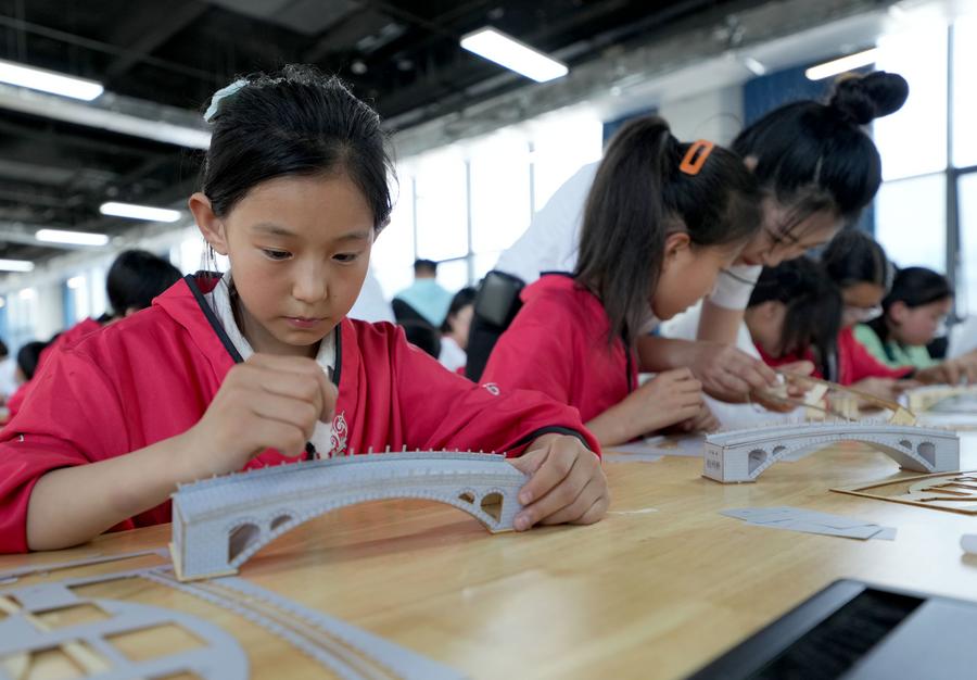 This photo taken on April 24, 2024 shows a statue of Li Chun, designer of the Zhaozhou Bridge, in the Zhaozhou Bridge scenic area in Zhaoxian County, north China's Hebei Province. (Xinhua/Mu Yu)An aerial drone photo taken on April 25, 2024 shows tourists on the Zhaozhou Bridge in Zhaoxian County, north China's Hebei Province. (Xinhua/Wang Yuguo)This file photo shows the carving patterns on the Zhaozhou Bridge in Zhaoxian County, north China's Hebei Province. (Photo by Zhu Tao/Xinhua)An aerial drone photo taken on April 24, 2024 shows the Zhaozhou Bridge at night in Zhaoxian County, north China's Hebei Province. (Xinhua/Mu Yu)An aerial drone photo taken on April 24, 2024 shows the Zhaozhou Bridge at sunset in Zhaoxian County, north China's Hebei Province. (Xinhua/Mu Yu)Students make models of the Zhaozhou Bridge at a primary school in Zhaoxian County, north China's Hebei Province, April 25, 2024. (Xinhua/Wang Yuguo)A child displays a popsicle with a pattern of the Zhaozhou Bridge in Zhaoxian County, north China's Hebei Province, April 25, 2024. (Xinhua/Wang Yuguo)This photo taken on April 24, 2024 shows the Zhaozhou Bridge at night in Zhaoxian County, north China's Hebei Province. (Xinhua/Mu Yu)An aerial drone photo taken on April 24, 2024 shows the Zhaozhou Bridge scenic area at night in Zhaoxian County, north China's Hebei Province. (Xinhua/Wang Yuguo)This file photo shows the carving patterns on the Zhaozhou Bridge in Zhaoxian County, north China's Hebei Province.(Photo by Zhu Tao/Xinhua)This file photo shows a stone carving on the Zhaozhou Bridge in Zhaoxian County, north China's Hebei Province. (Photo by Zhu Tao/Xinhua)■
