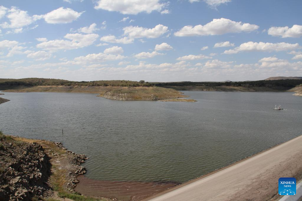 Photo taken on May 8, 2024 shows the Von Bach dam in Okahandja, a town about 70 km north of Windhoek, Namibia. Water levels at the reservoir at Von Bach Dam, the third-largest in Namibia and a vital water source for the capital city, Windhoek, are critically low, authorities warn. (Photo by Musa C Kaseke/Xinhua)