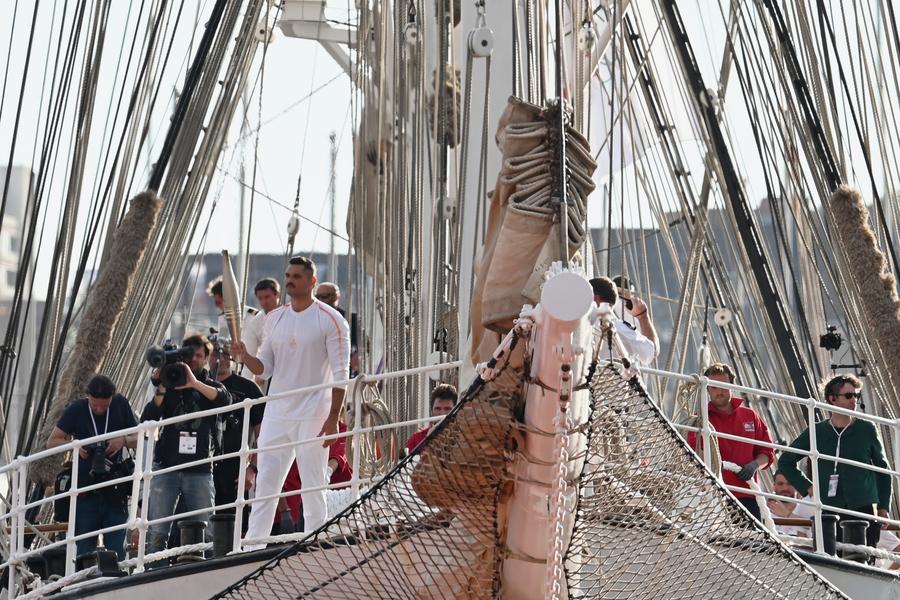MARSEILLE, France, May 8 (Xinhua) -- The Olympic flame of Paris 2024 arrived at the renowned Old Port of Marseille amid the radiant hues of the sunset on Wednesday evening.