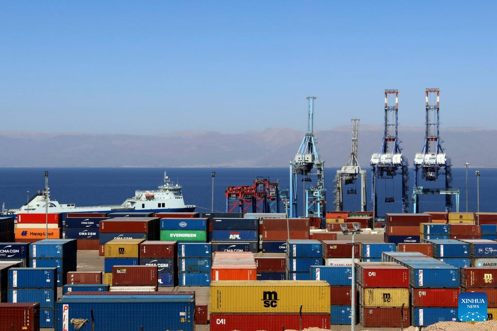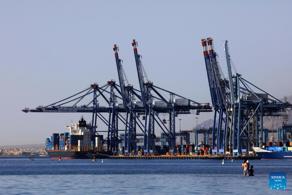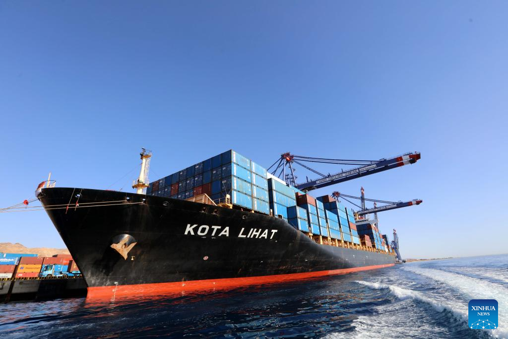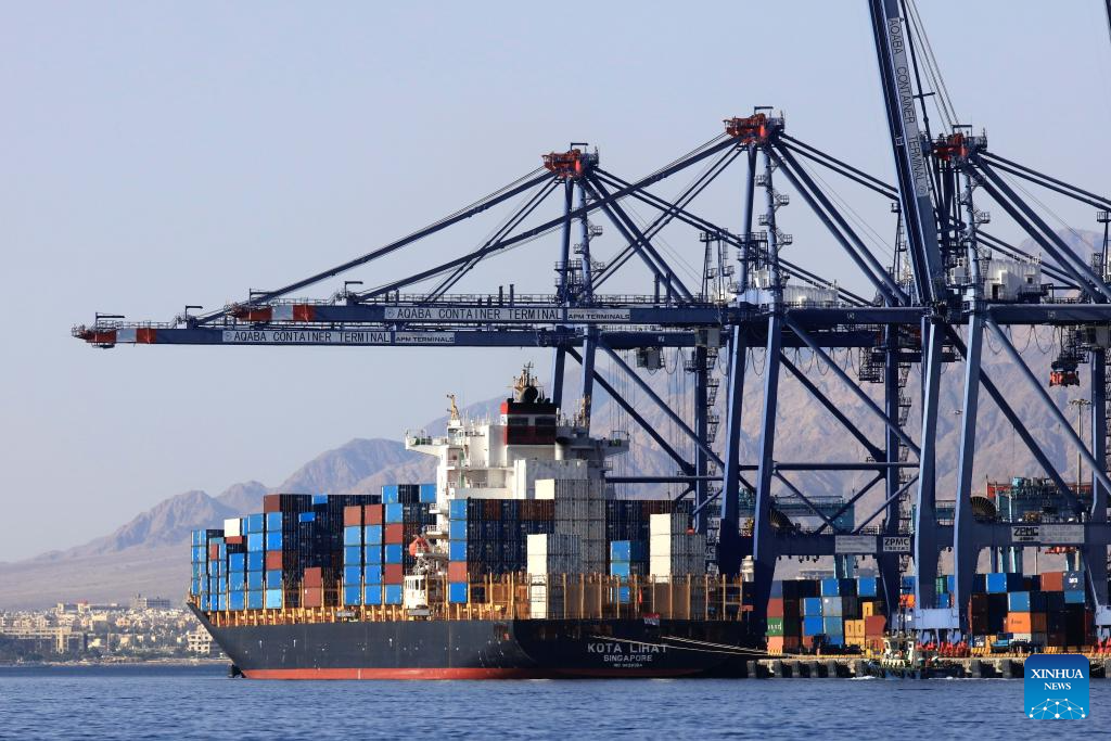 This photo taken on May 9, 2024 shows a view of the port of Aqaba, Jordan. The port of Aqaba, the only seaport in Jordan, has been drastically effected by the Red Sea situation and the ongoing conflict in Gaza. (Photo by Mohammad Abu Ghosh/Xinhua)