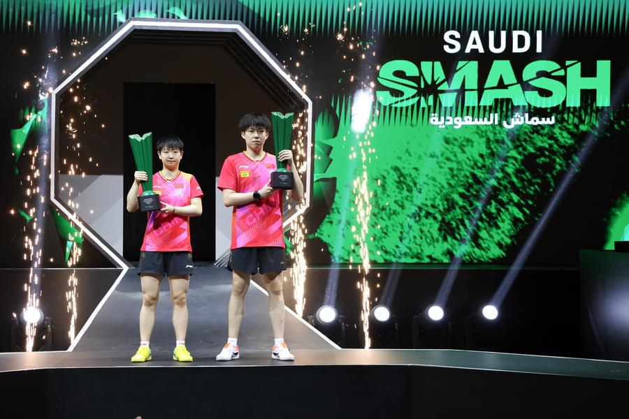 JEDDAH, May 9 (Xinhua) -- Chinese pair Wang Chuqin and Sun Yingsha won the mixed doubles title with ease at the 2024 World Table Tennis (WTT) Saudi Smash on Thursday.