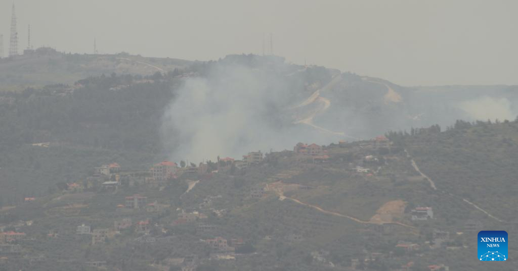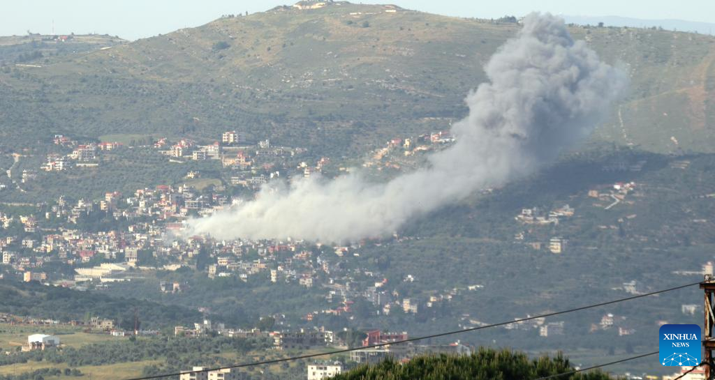 The smoke caused by an Israeli strike rises in Kafr Kila, Lebanon, May 10, 2024. A member of the Lebanese armed group Hezbollah was killed and a civilian wounded on Friday at dawn in an Israeli raid targeting the southeastern Lebanese village of Kafr Kila, Lebanese military sources told Xinhua.