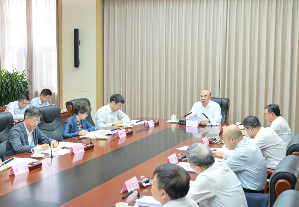 Chinese Vice Premier Liu Guozhong, also a member of the Political Bureau of the Communist Party of China Central Committee, speaks during a research trip on summer harvest at the Ministry of Agriculture and Rural Affairs in Beijing, capital of China, May 10, 2024. (Xinhua/Gao Jie)