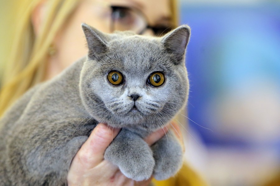 A British Shorthair cat is seen during the Sofisticat Spring International Cat show in Bucharest, Romania, May 11, 2024. (Photo by Cristian Cristel/Xinhua)