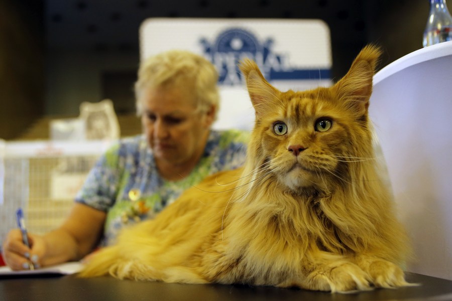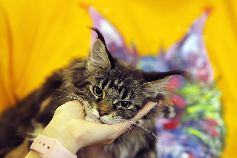 A Maine Coon cat is seen during the Sofisticat Spring International Cat show in Bucharest, Romania, May 11, 2024.(Photo by Cristian Cristel/Xinhua)