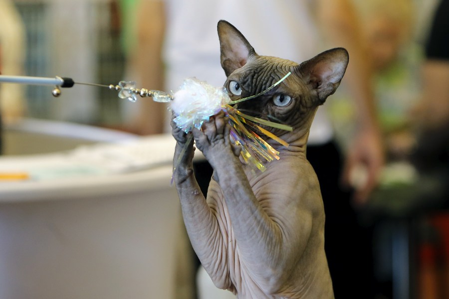 A Sphynx cat is seen during the Sofisticat Spring International Cat show in Bucharest, Romania, May 11, 2024. (Photo by Cristian Cristel/Xinhua)