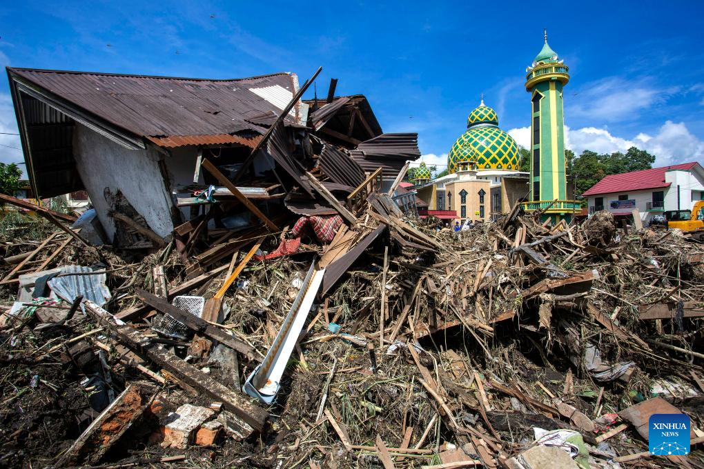 This photo taken on May 13, 2024 shows a damaged area after a cold lava flood at Agam regency in West Sumatra, Indonesia. The number of fatalities of the lava floods in Indonesia's West Sumatra province rose to 37 with 17 others missing, a senior official of the local disaster agency told Xinhua on Monday. Rains on Saturday night had swept away cold lava from Marapi volcano and Singgalang volcano, resulting in cold lava floods that hit the regencies of Tanah Datar, Agam and Pariaman, and Padang Panjang town. (Photo by Andri Madiansyah/Xinhua)