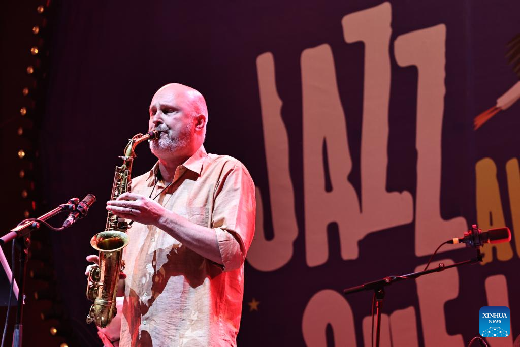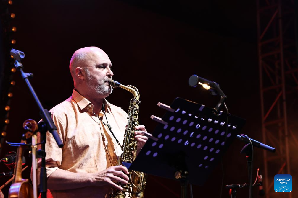 A musician performs during the closing concert of the 26th Chellah Jazz Music Festival at the Chellah site in Rabat, Morocco, May 12, 2024. (Xinhua/Huo Jing)