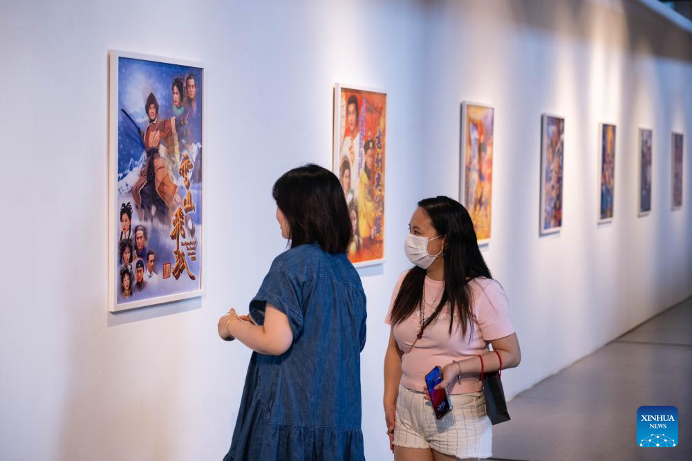 Visitors watch exhibits at the Jin Yong Wuxia Drama Costumes and Weapons Exhibition held in Macao, south China, May 14, 2024. This exhibition relives the iconic scenes from eight renowned Wuxia TV dramas of the late Chinese martial arts novelist Louis Cha Leung-yung, more widely known by his pen name Jin Yong. (Xinhua/Cheong Kam Ka)