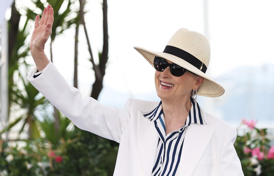 Meryl Streep poses at a photocall before the opening ceremony of the 77th Cannes Film Festival in Cannes, southern France, on May 14, 2024. (Xinhua/Gao Jing)■