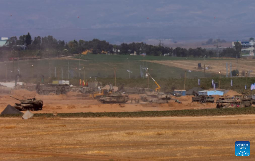 Israeli troops are seen near the border with northern Gaza Strip, in southern Israel, on May 16, 2024. Five Israeli soldiers were killed and seven others injured, three of them seriously, by errant Israeli tank fire in the Jabalia refugee camp in the northern Gaza Strip, the Israel Defense Forces (IDF) said in a statement on Thursday. (Photo by Gil Cohen Magen/Xinhua)