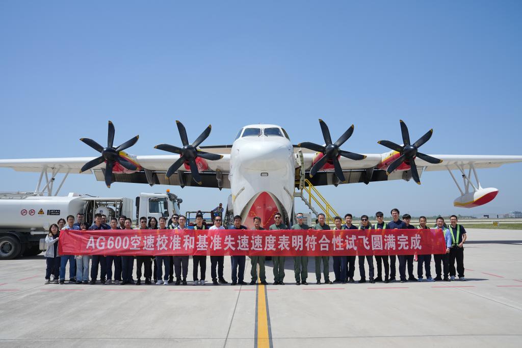 On May 13, the AG600 completed the last flight of the compliance flight test subjects for its in-flight airspeed calibration and standard stall speed at a test flight base for civil aircraft in Pucheng in northwest China's Shaanxi Province.