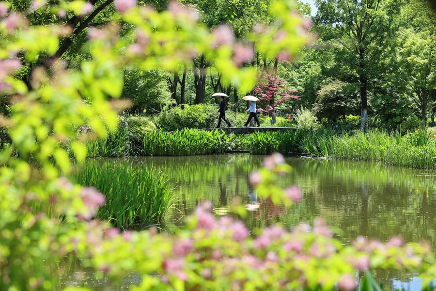Hangzhou, May 17 (Xinhua) -- Various green spaces with picturesque scenery in east China's Zhejiang Province now find themselves increasingly popular among the locals, where people unwind and enjoy the views. This also showcases a harmonious co-existence between human and the nature.