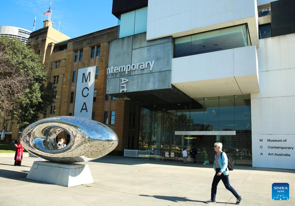 This photo taken on May 17, 2024 shows an art installation in front of the Museum of Contemporary Art Australia (MCA) in Sydney, Australia. First opened its doors to the public in 1991, the MCA aims to be the platform for contemporary art and ideas in Australia and the world. (Xinhua/Ma Ping)
