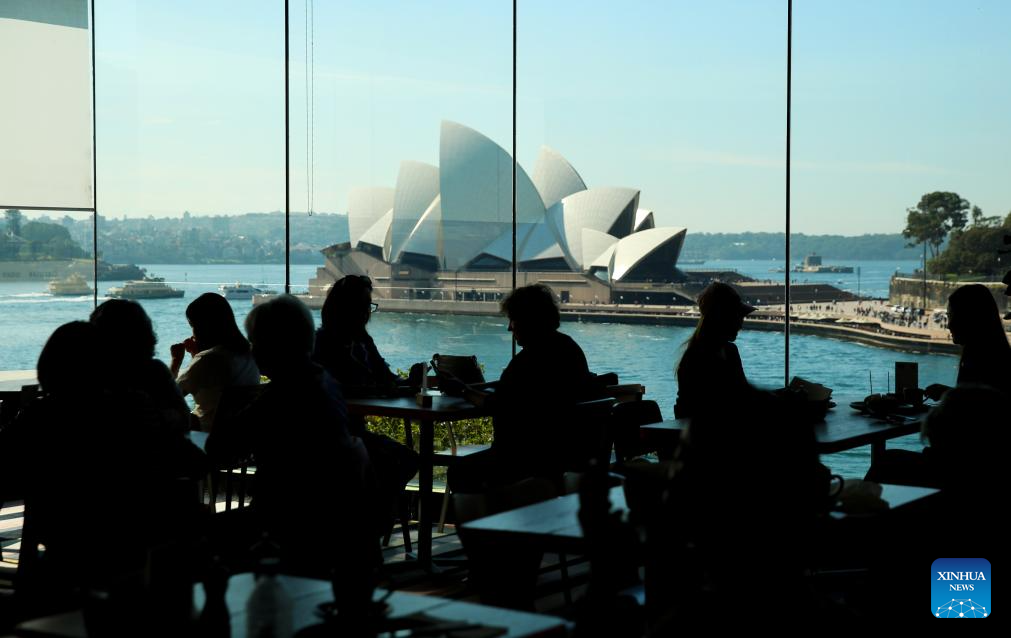 People dine at a cafe inside the Museum of Contemporary Art Australia (MCA) in Sydney, Australia, May 17, 2024. First opened its doors to the public in 1991, the MCA aims to be the platform for contemporary art and ideas in Australia and the world. (Xinhua/Ma Ping)