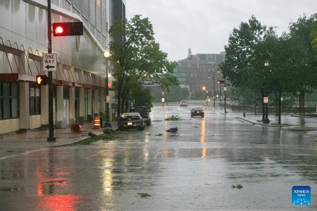 This photo taken on May 16, 2024 shows a street after storm in Houston, Texas, the United States. At least four people were dead after strong storms hit Houston late Thursday, the largest city in the U.S. state of Texas, city officials said.