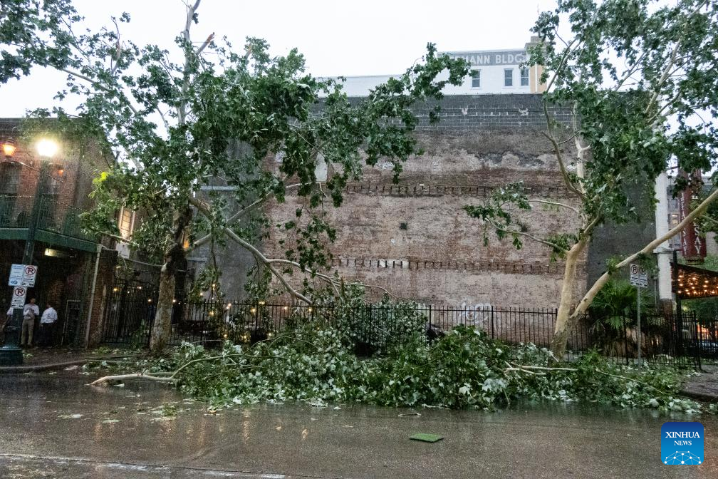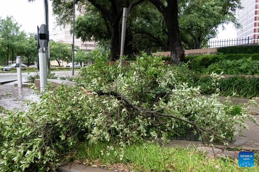 Fallen branches are seen on a street in Houston, Texas, the United States, May 16, 2024. At least four people were dead after strong storms hit Houston late Thursday, the largest city in the U.S. state of Texas, city officials said.