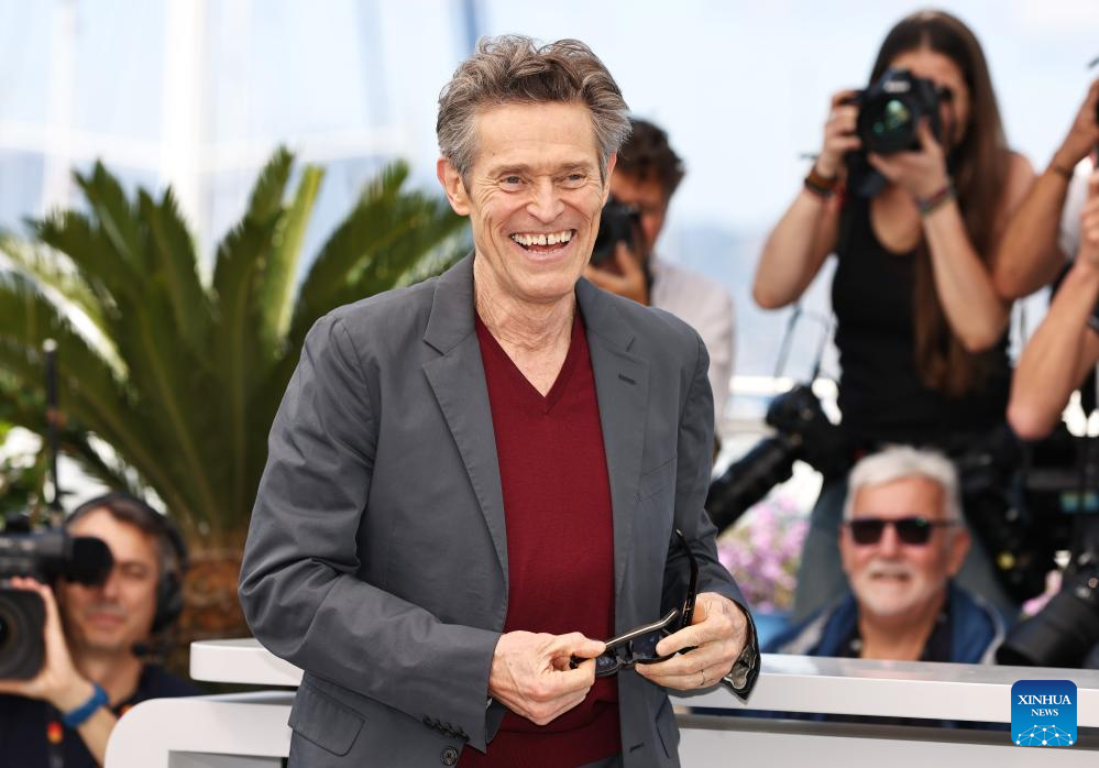 Actor Willem Dafoe arrives for a photocall for the film "Kinds Of Kindness" at the 77th edition of the Cannes Film Festival in Cannes, southern France, on May 18, 2024. (Xinhua/Gao Jing)