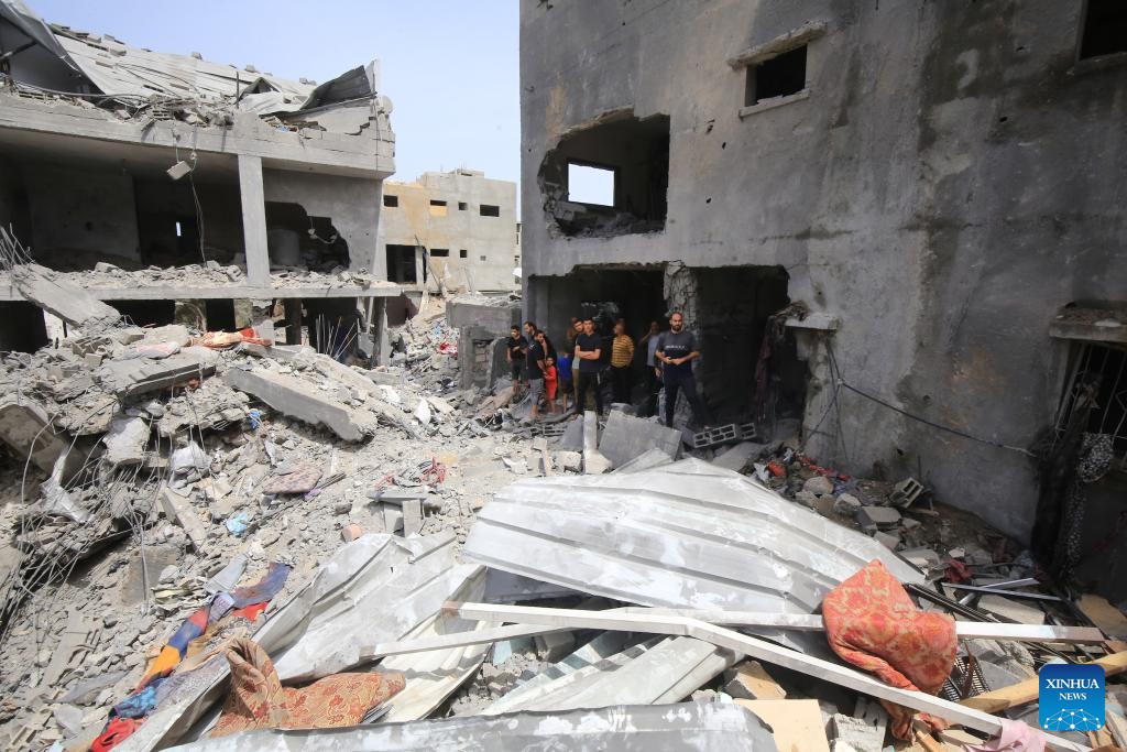 Local sources and eyewitnesses told Xinhua that Israeli warplanes targeted at dawn an inhabited house for the Hassan family in the Nuseirat Palestinian refugee camp, which led to its destruction.