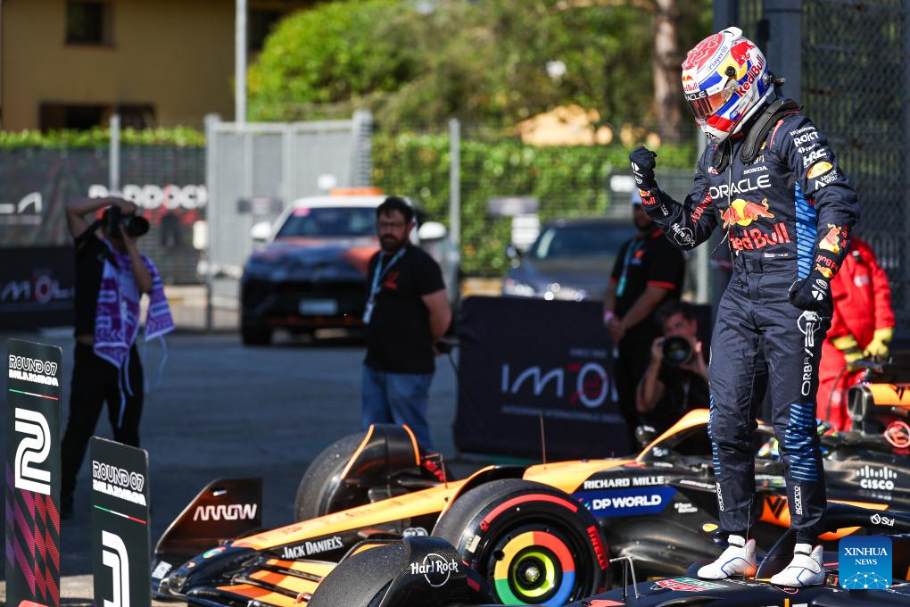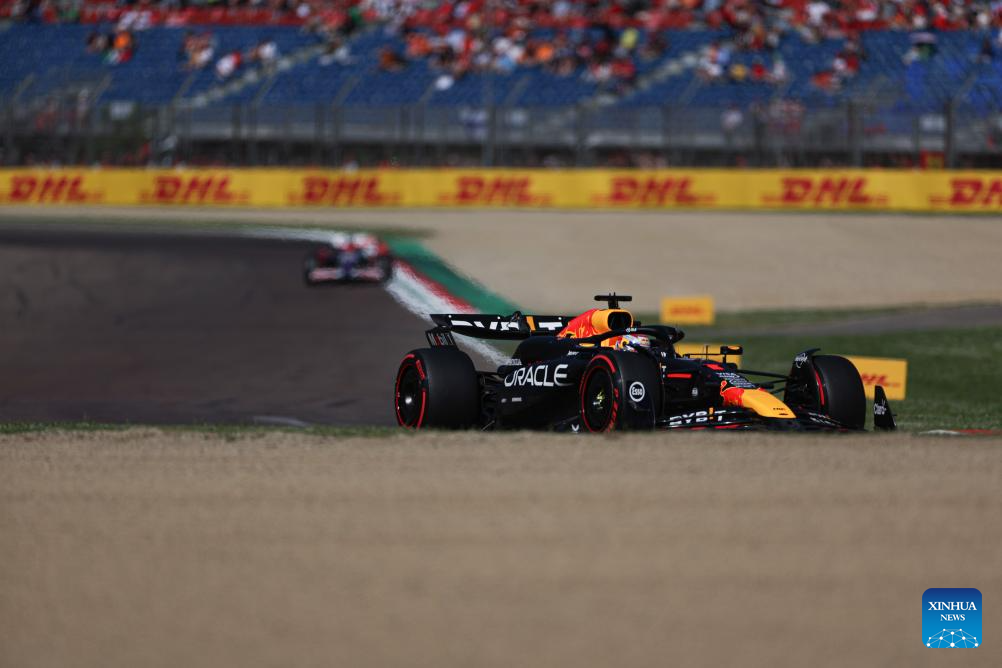 Red Bull Racing's Dutch driver Max Verstappen competes during the qualifying session of the Formula One Emilia Romagna Grand Prix held at the Autodromo Internazionale Enzo e Dino Ferrari race track in Imola, Italy, May 18, 2024. (Xinhua/Li Jing)
