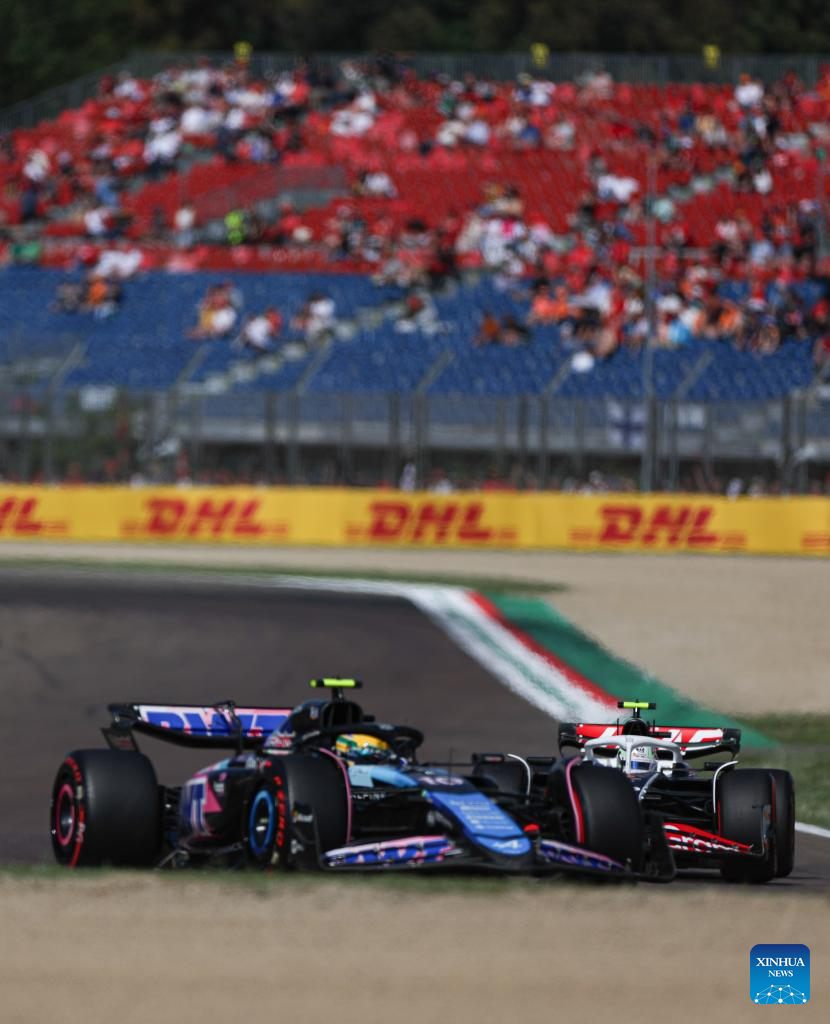 Haas' German driver Nico Hulkenberg (R) and Alpine Renault's french driver Pierre Gasly compete during the qualifying session of the Formula One Emilia Romagna Grand Prix held at the Autodromo Internazionale Enzo e Dino Ferrari race track in Imola, Italy, May 18, 2024. (Xinhua/Li Jing)